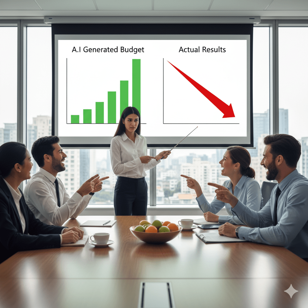 Image Caption Note: Google Gemini created this illustration regarding an AI control system for producing budgets, one that (erroneously) generates output that fails to bear any resemblance to actual results. Can you also spot a more complex and focused systems error that is embedded in the illustration? All of the colleagues who are sitting at the conference table are twins! Clearly, the user’s AI prompts and queries failed to anticipate or prevent this error.